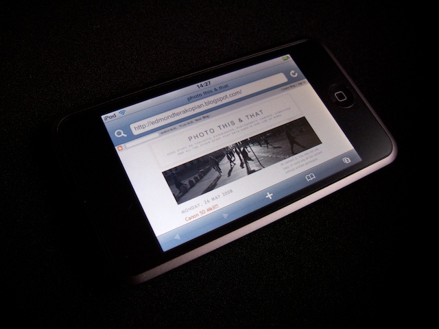 Its next amazing ability is its full web browser. Now, our mobile phones can browse the web, but the Touch (like the iPhone) has a full version of Safari, which means you can see web sites in their fullest and not a cut down version that mobile phones show. Also, by turning the Touch on its side, you can view the site horizontally. The only downside is that the Touch doesn’t yet support Flash, but I’m hopeful that this will be addressed.
