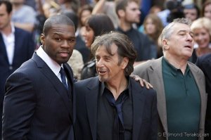 Alas, as De Niro and Pacino appeared, it all went wrong! Naturally they did the rounds signing autographs for the fans and then the line of ever increasing TV interviews. They kept criss-crossing in front of us (which gave an opportunity for a few “candid” frames, but nothing amazing as there were people in the way and messy backgrounds). Finally it was our turn. Whilst the PRs controlling the event had dutifully got several “celebrities” to pose for us, when it came to the reason most of us were there, they managed a group shot! This included De Niro and Pacino, but also “50 Cent” and the film’s director Jon Avnet. Whilst these are definitely pictures worth having, for me, the main picture was of Robert and Al. I kept thinking how hard could it be to have these gents walk down the red carpet towards the photographers? All they would need to do was walk ten meters whilst talking with each other and then do a minute or two’s worth of posing and working the line.