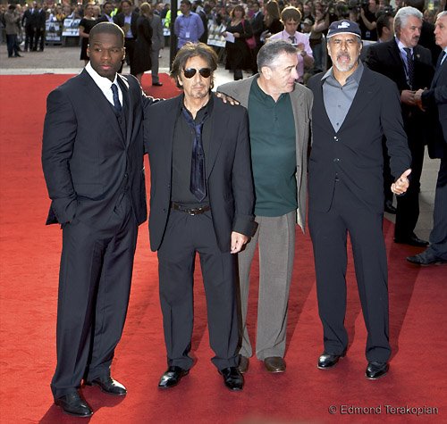 Alas, as De Niro and Pacino appeared, it all went wrong! Naturally they did the rounds signing autographs for the fans and then the line of ever increasing TV interviews. They kept criss-crossing in front of us (which gave an opportunity for a few “candid” frames, but nothing amazing as there were people in the way and messy backgrounds). Finally it was our turn. Whilst the PRs controlling the event had dutifully got several “celebrities” to pose for us, when it came to the reason most of us were there, they managed a group shot! This included De Niro and Pacino, but also “50 Cent” and the film’s director Jon Avnet. Whilst these are definitely pictures worth having, for me, the main picture was of Robert and Al. I kept thinking how hard could it be to have these gents walk down the red carpet towards the photographers? All they would need to do was walk ten meters whilst talking with each other and then do a minute or two’s worth of posing and working the line.