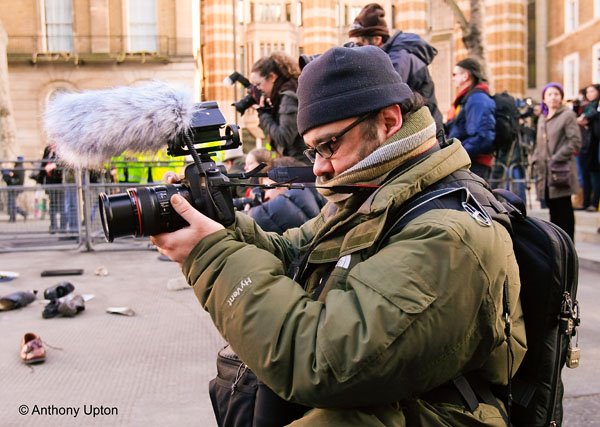 Rode VideoMic and 5D MkII in action during a Gaza demo
