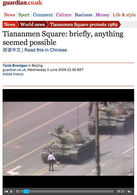 On the 20th anniversary of the tragic events at Tiananmen Square, The Guardian’s Dan Chung has put together some spectacular films using footage from 1989 married to recent interviews and footage of the square yesterday. These are well worth a watch:
