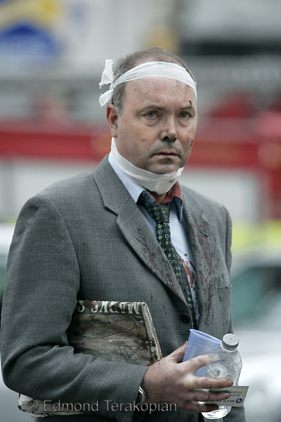 Terrorist suicide bombing of London. Walking wounded from Edgware Road tube station. Photo: Edmond Terakopian