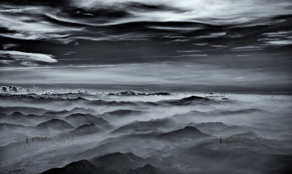 Sky and mountain top scene from plane on route back from Perpignan to London. September 10, 2007. Photo: ©Edmond Terakopian