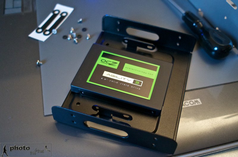 Upgrading the Mac Pro to SSDs. The OCZ Agility 3 mounted in the Akasa SSD & HDD Adapter. August 02, 2011. Photo: Edmond Terakopian