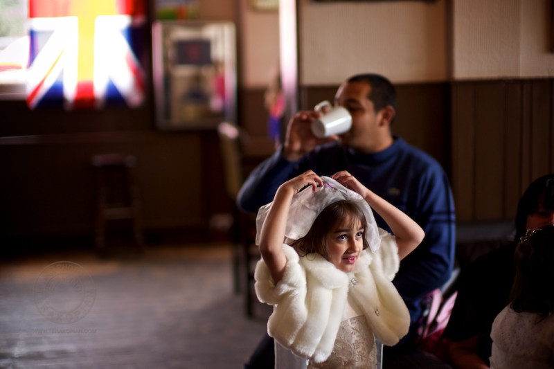 British street party on Enfield Road and the Lord Nelson pub, Brentford, Middlesex on the occasion of the Royal Wedding of Prince William to Catherine Middleton at Westminster Abbey on April 29, 2011 in London, England. Maicie (6) Ernestine in a wedding dress watches the wedding on a TV inside the pub. Friday, April 29, 2011. Photo: Edmond Terakopian