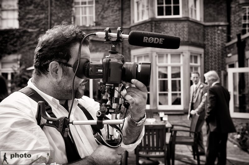Photographer and film maker Edmond Terakopian using a Canon 5D MkII, Zacuto Striker and Z-Finder Pro x2.5, Think Tank Photo Wired Up 10 bag, Zoom H4-n and Rode NTG-3 mic The wedding of Sheleen and Ben. August 28, 2010. Photo: Jeff Ascough