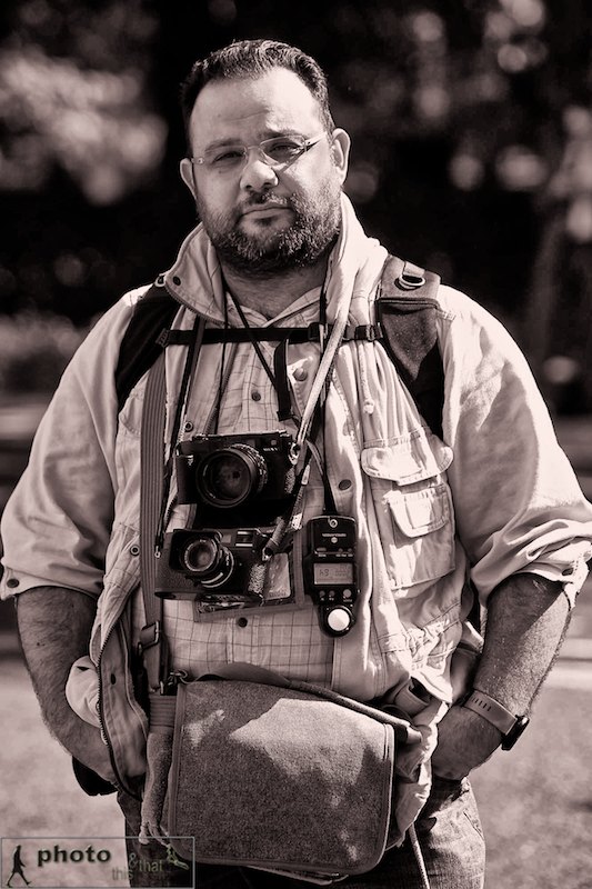 Photographer Edmond Terakopian on assignment; 10th commemoration of the September 11th terrorist attacks on the United States. American Embassy, Grosvenor Square, London, UK. September 11, 2011. Photo: ©