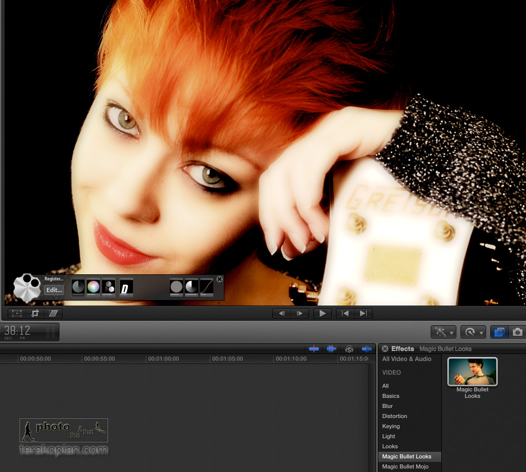 Red Giant’s Magic Bullet Looks on FCP X. A closeup view showing the logo on the bottom left of the viewer which shows which filters were used and also has an edit button for opening up the Magic Bullet grading window.