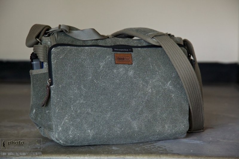 Think Tank Photo Retrospective 7 shoulder bag. Rear view, showing a lightmeter in the side pocket. May 31, 2012. Photo: Edmond Terakopian