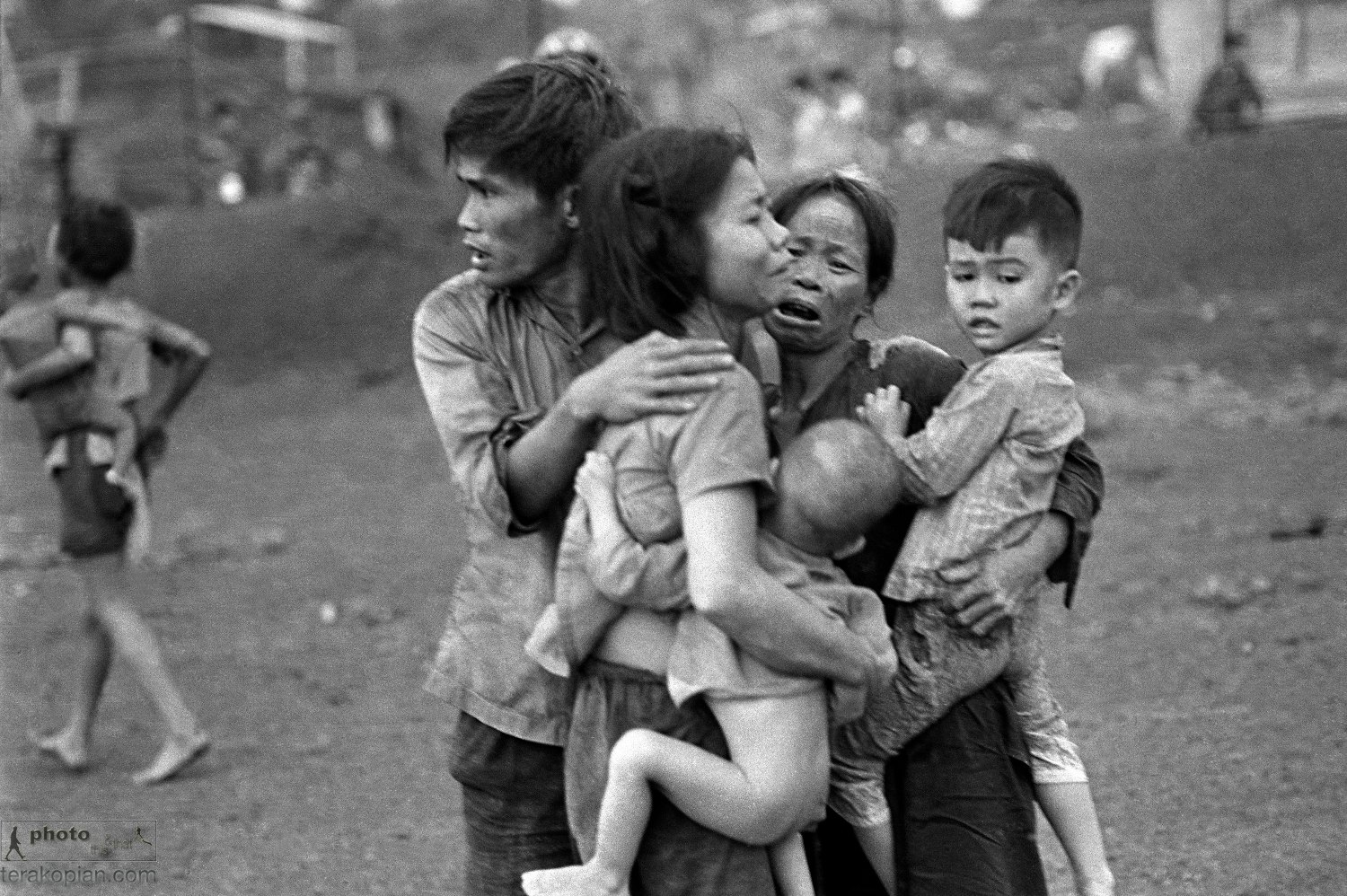 South Vietnamese civilians, among the few survivors of two days of heavy fighting, huddle together in the aftermath of an attack by government troops to retake the post at Dong Xoai, June 1965. Just a few of the several hundred civilians who sought refuge at the post survived the two day barrage of mortars and bombardment. After the government recaptured Dong Xoai, the bodies of 150 civilians and some 300 South Vietnamese soldiers were discovered. (AP Photo/Horst Faas) FOR ONE-TIME USE ONLY IN CONNECTION WITH THE AP/HORST FAAS EXHIBIT AT THE FOREIGN CORRESPONDENTS CLUB OF HONG KONG