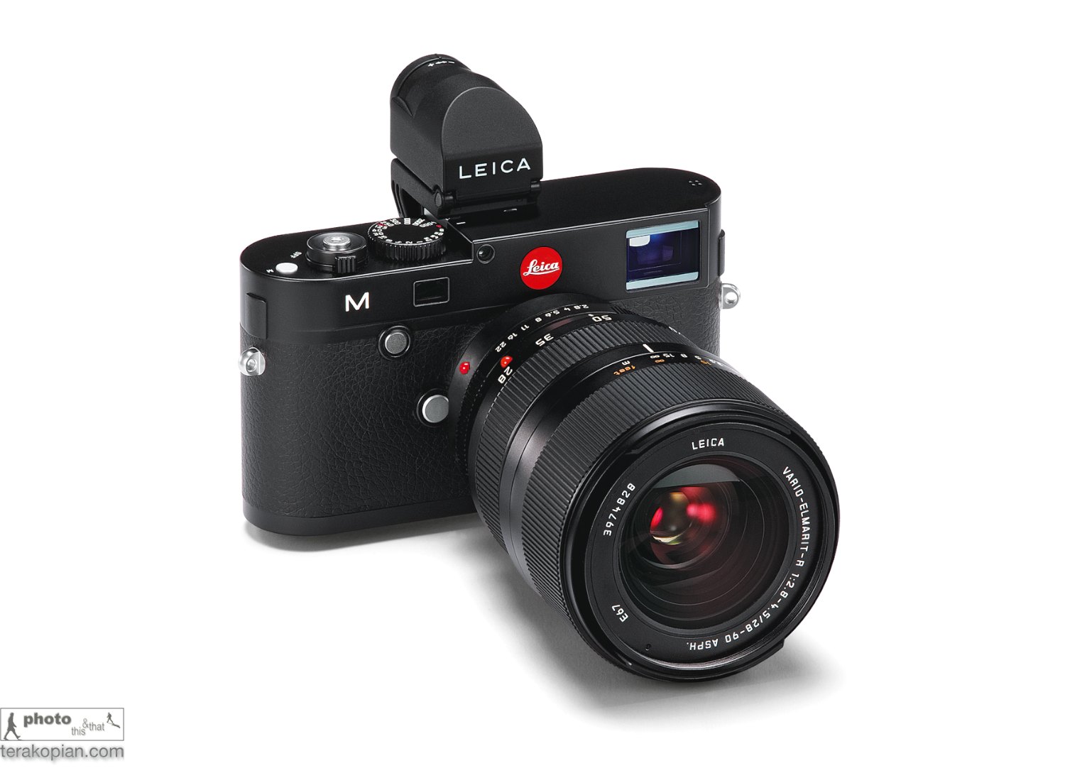 The Leica M, Leica R-Adapter M (and an Leica R 28-90mm zoom lens) and Leica EVF2 electronic viewfinder. Photo: © Leica