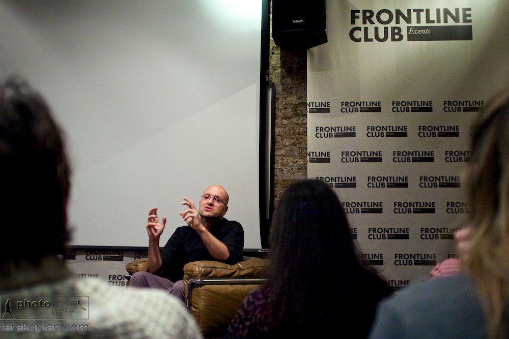 Deadline Every Second screening and Q&A. AP staff photographer Lefteris Pitarakis ansers questions put from the packed screening room. Frontline Club, London. September 21, 2012. Photo: Edmond Terakopian