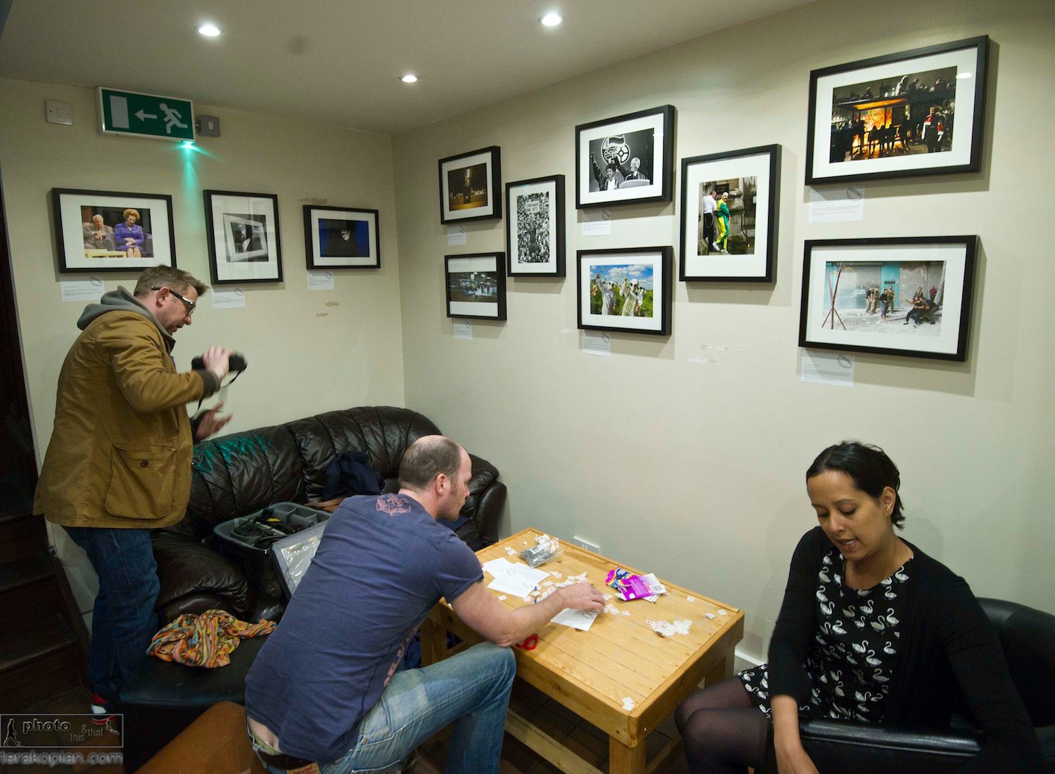 Setting up the Fleet Street Photo Exhibition at “The Fleet Street Press” Coffee and Tea House, 3 Fleet Street, EC4Y 1AU, London. April 21, 2013. Photo: ©Jonathan Buckmaster