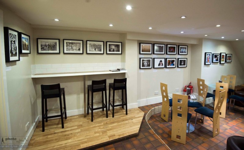 Setting up the Fleet Street Photo Exhibition at “The Fleet Street Press” Coffee and Tea House, 3 Fleet Street, EC4Y 1AU, London. April 21, 2013. Photo: ©Jonathan Buckmaster