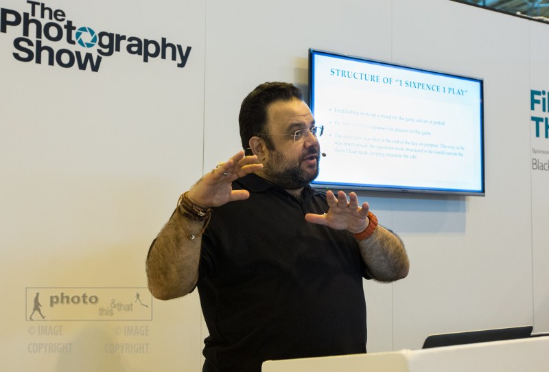 “Essentials In Documentary Film Making” talk by Edmond Terakopian at the Filmmaker Theatre on behalf of Snapper Stuff. The Photography Show, NEC, Birmingham. March 23, 2015. Photo: Freia Turland