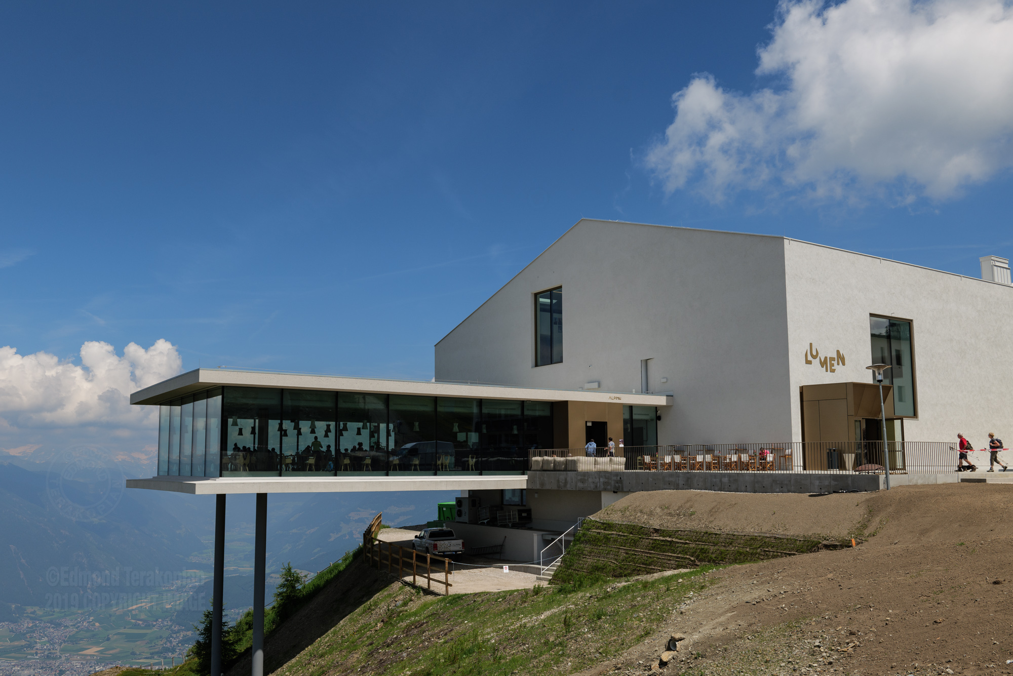 Inauguration of Lumen, the Museum of Mountain Photography, at 2275m, perched atop Mount Kronplatz-Plan de Corones, South Tyrolean Mountains and Dolomites, Italy. July 20, 2019. Photo: Edmond TerakopianHikers exploring a trail on Mount Kronplatz-Plan de Corones, South Tyrolean Mountains and Dolomites, Italy. July 20, 2019. Photo: Edmond Terakopian
