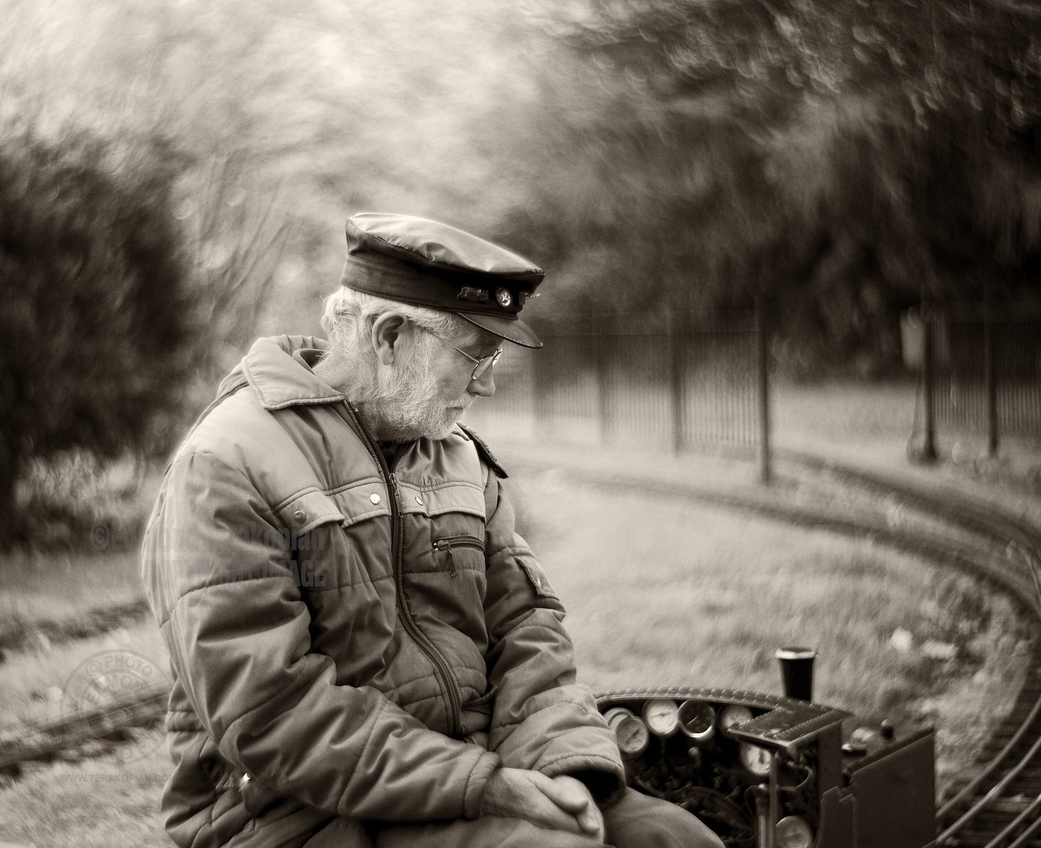 Harrow and Wembley Society of Model Engineers, Roxbourne Park Railway, Field End Road, Ruislip, Middlesex. A driver waits for passengers on his locomotive. April 02, 2014. Photo: Edmond Terakopian