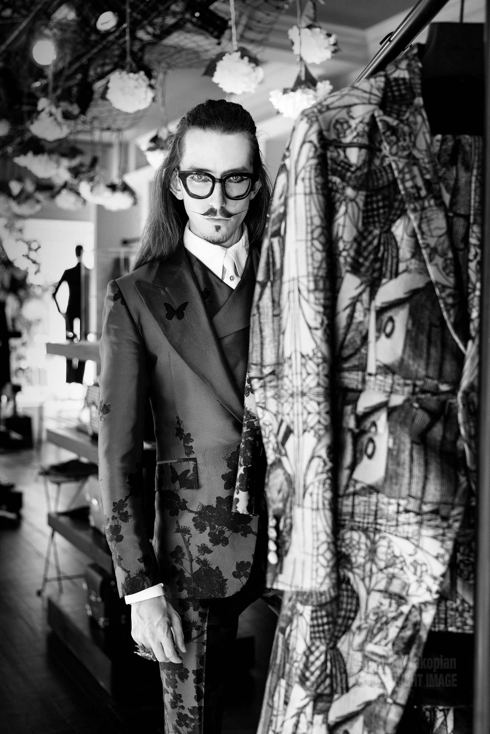 Fashion designer and independent British luxury brand, Joshua Kane, in his flagship store at 68 Great Portland Street, London, UK. July 23, 2019. Photo: Edmond Terakopian