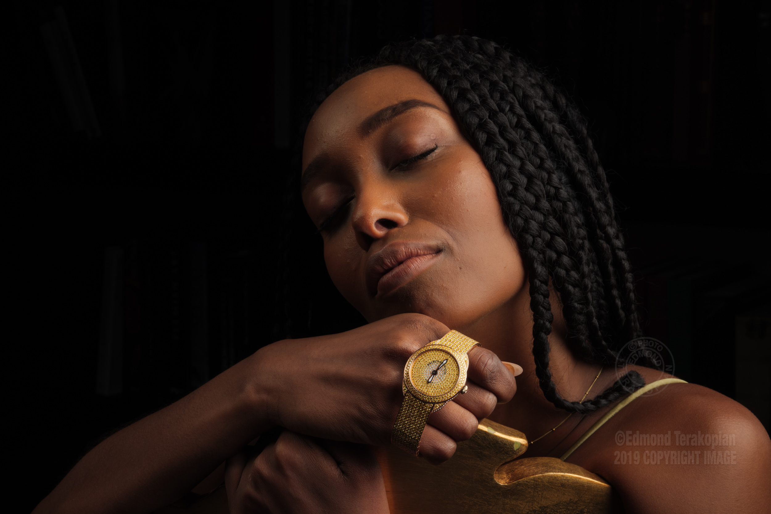 A Piccadilly Ballerina Jonquil timepiece, modelled by Mona Ali. British luxury timepiece creator Backes & Strauss (founded in 1789). 21-22 Grosvenor Street, Mayfair, London, UK. July 17, 2019. Photo: Edmond Terakopian ***Photo taken using a pre-production Lumix S 24-70mm f2.8 lens, running early firmware. This lens is not a final production sample*** COPYRIGHT PHOTO
