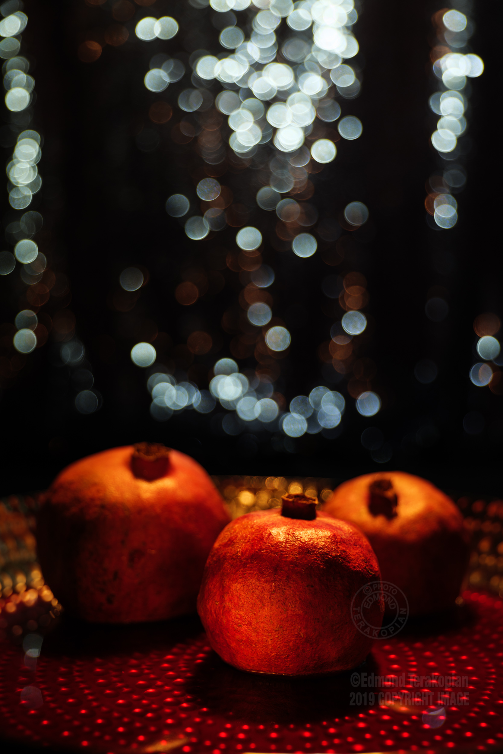 In Armenian mythology, the pomegranate is celebrated as a symbol of life and is also believed to keep us safe from evil spirits. It has religious connotations to Christianity and is seen as the blood of Christ. The mythology of ancient Greece regarded this fruit as the symbol of life, marriage and rebirth. The fruit is also used as a holy symbol and respected in zoroastrian worshipping ceremonies and rituals.The pomegranate symbolises the soul’s immortality and the perfection of nature for Zoroastrians. For Muslims, the pomegranate is also a symbol of beauty, it is said to give beauty to those who eat it. Prophet Mohammed has advised pregnant women to eat pomegranates if they wanted beautiful children. Placement of pomegranate trees in the gardens of Eden, brings meaning for Muslims, who as a result believe that it is a holy tree. The Jewish mysticism called Kabbala reveres the pomegranate in many of its rituals. In modern Turkey today, many families throw a pomegranate on the floor and “crack” it on the New Year’s Eve to have a plentiful new year. Pomegranate still life. London, UK. July 16, 2019. Photo: Edmond Terakopian ***Photo taken using a pre-production Lumix S 24-70mm f2.8 lens, running early firmware. This lens is not a final production sample*** COPYRIGHT PHOTO