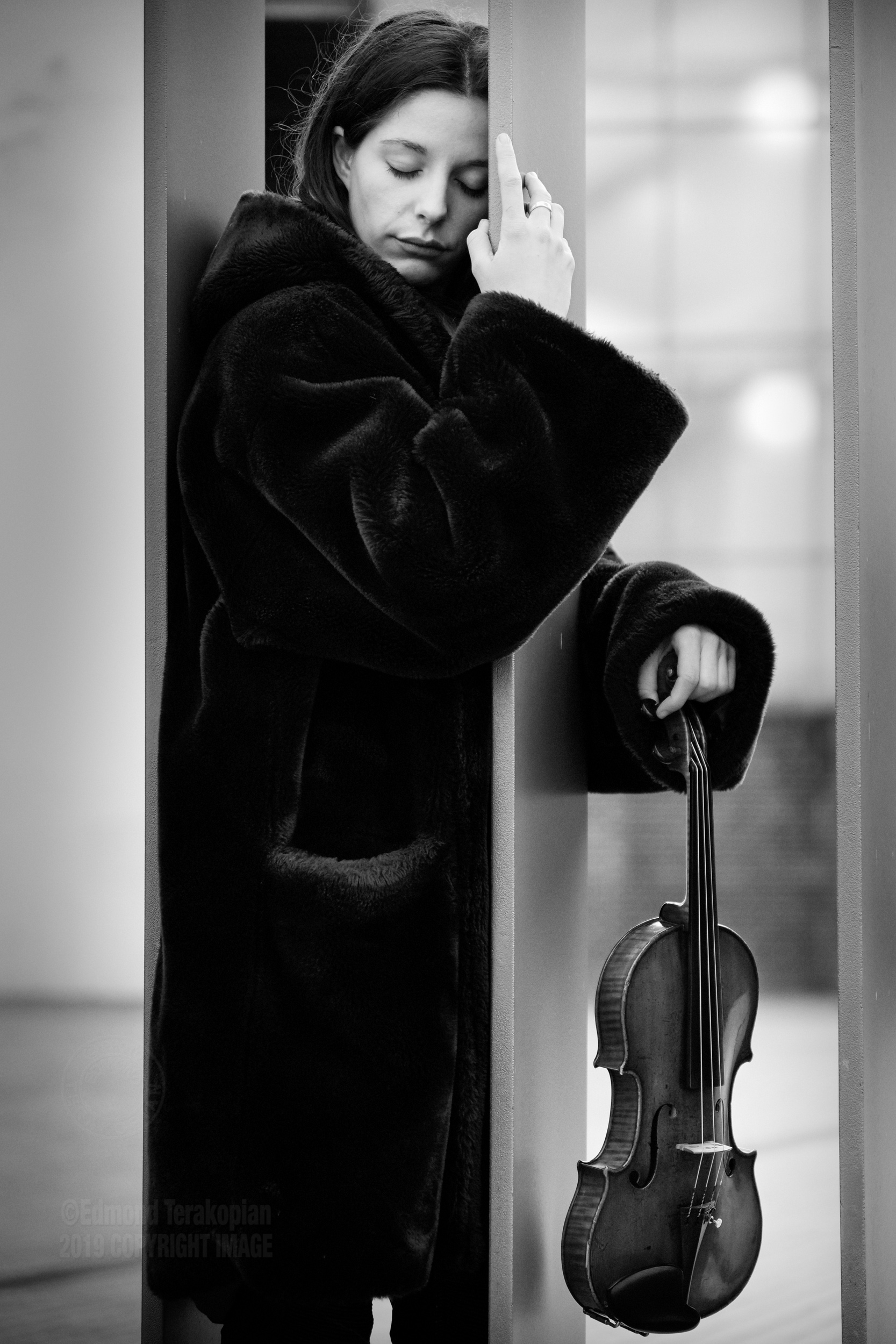 Portrait of violinist Asia Jimnez Antn de Vez. London, UK. January 18, 2019. Photo: Edmond Terakopian *Test shot with a prototype of a Panasonic Lumix S1. Copyright Photo* **Image taken with a Lumix S1 preproduction sample (Image quality not final)**