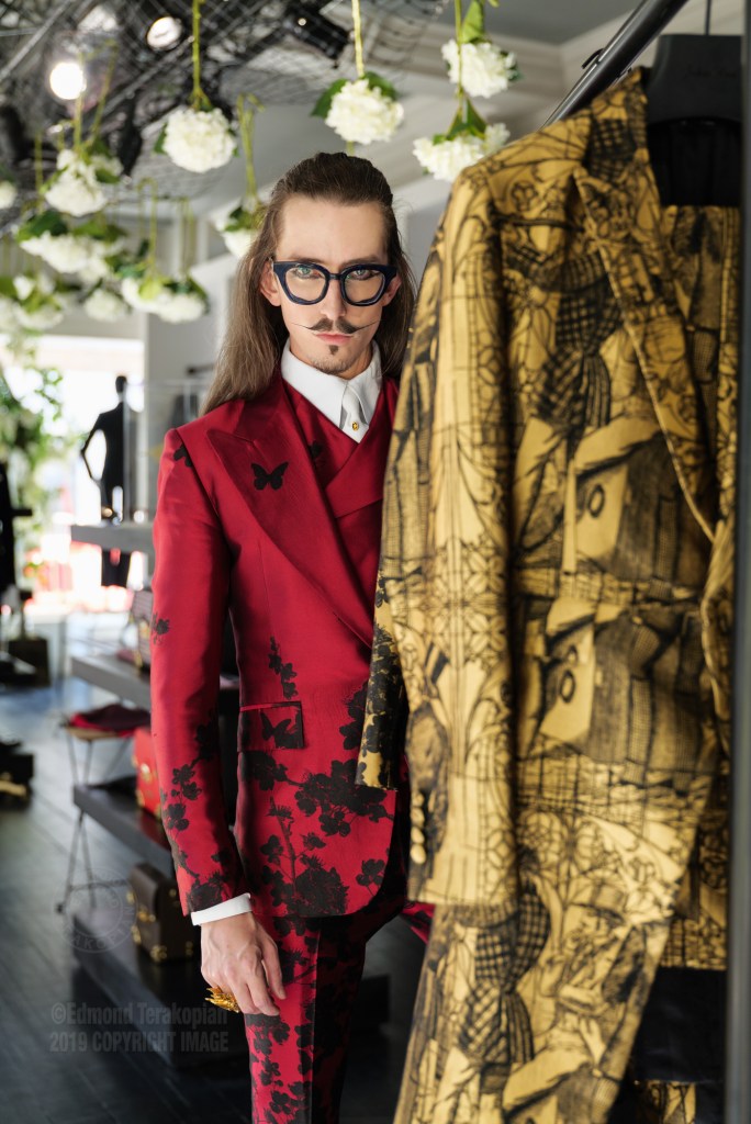Fashion designer and independent British luxury brand, Joshua Kane, in his flagship store at 68 Great Portland Street, London, UK. July 23, 2019. Photo: Edmond Terakopian